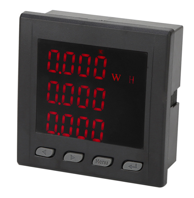 LCD显示、全电参量测量(U、I、P、Q、PF、F),四象限电能计量、复费率电能统计、最大需量统计。
